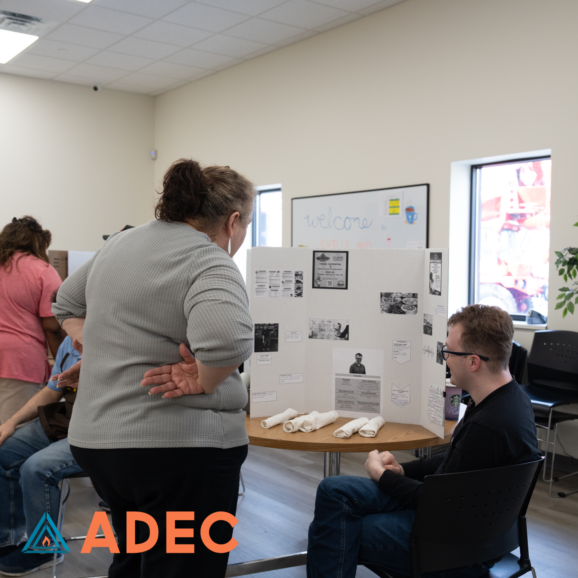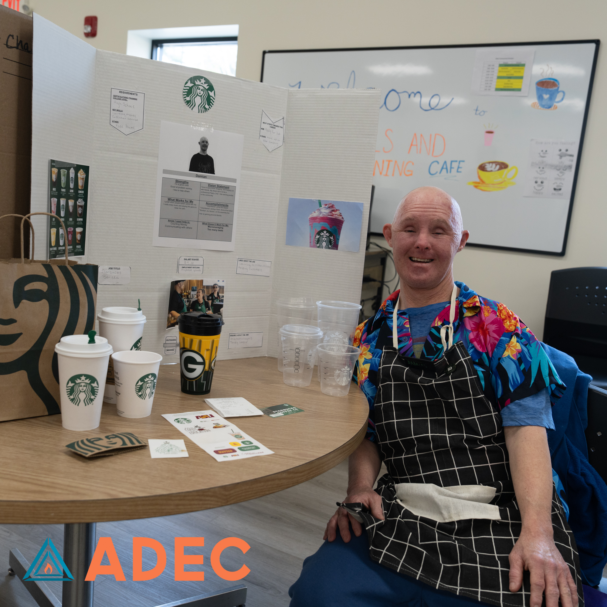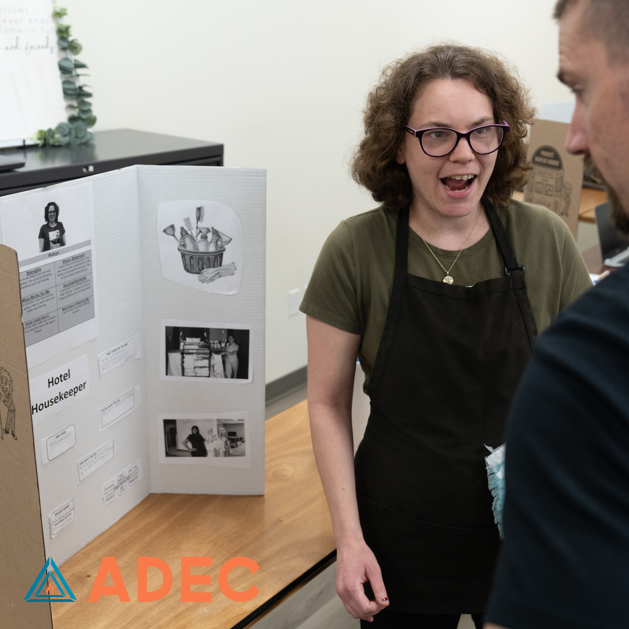 Our Skills & Training program spent weeks researching careers and preparing creative, thoughtful projects to showcase a job they wanted to learn more about. On April 29th, each individual proudly presented their hard work, and our ADEC community showed up to celebrate them! From future chefs to mechanics and everything in between, the effort and passion on display was truly inspiring!