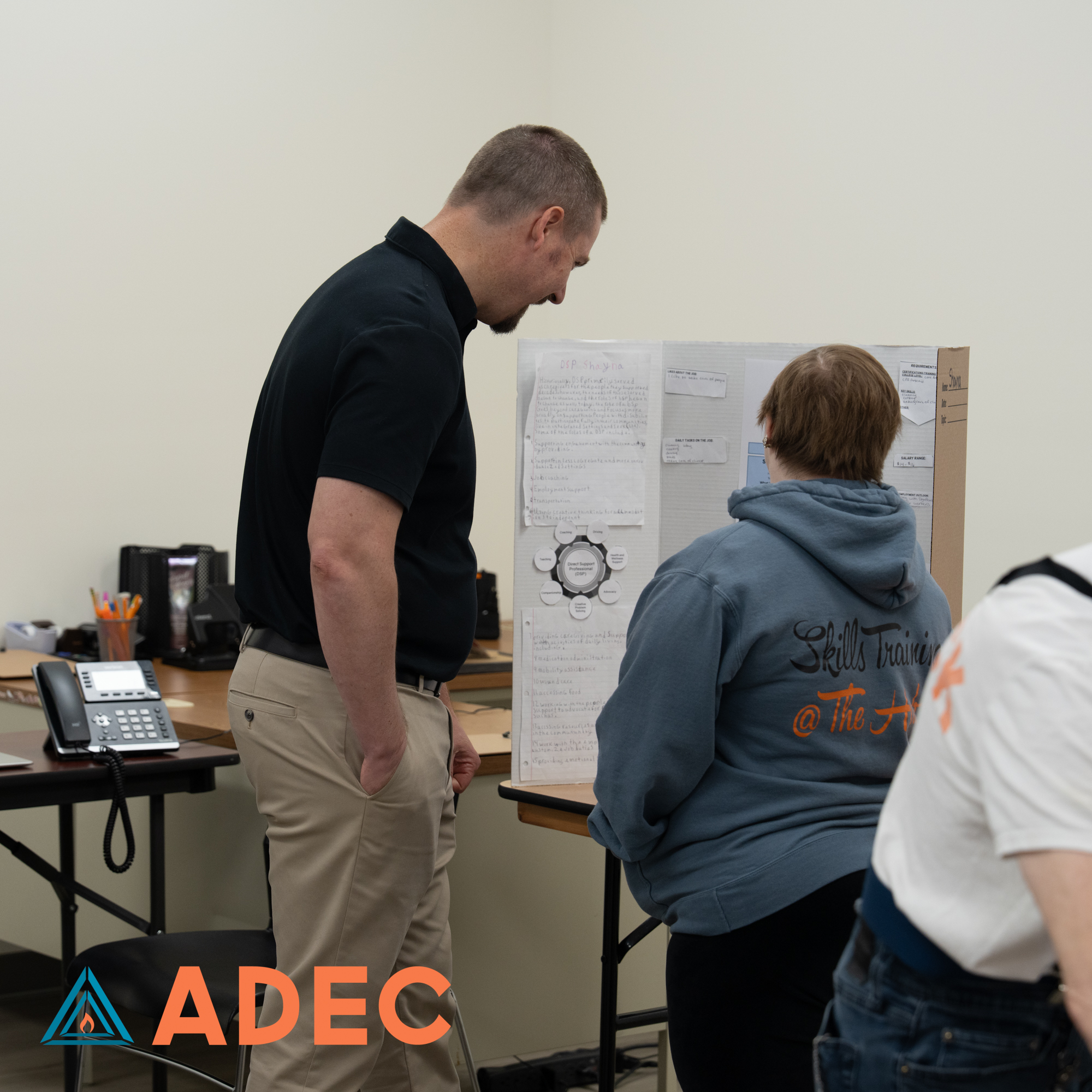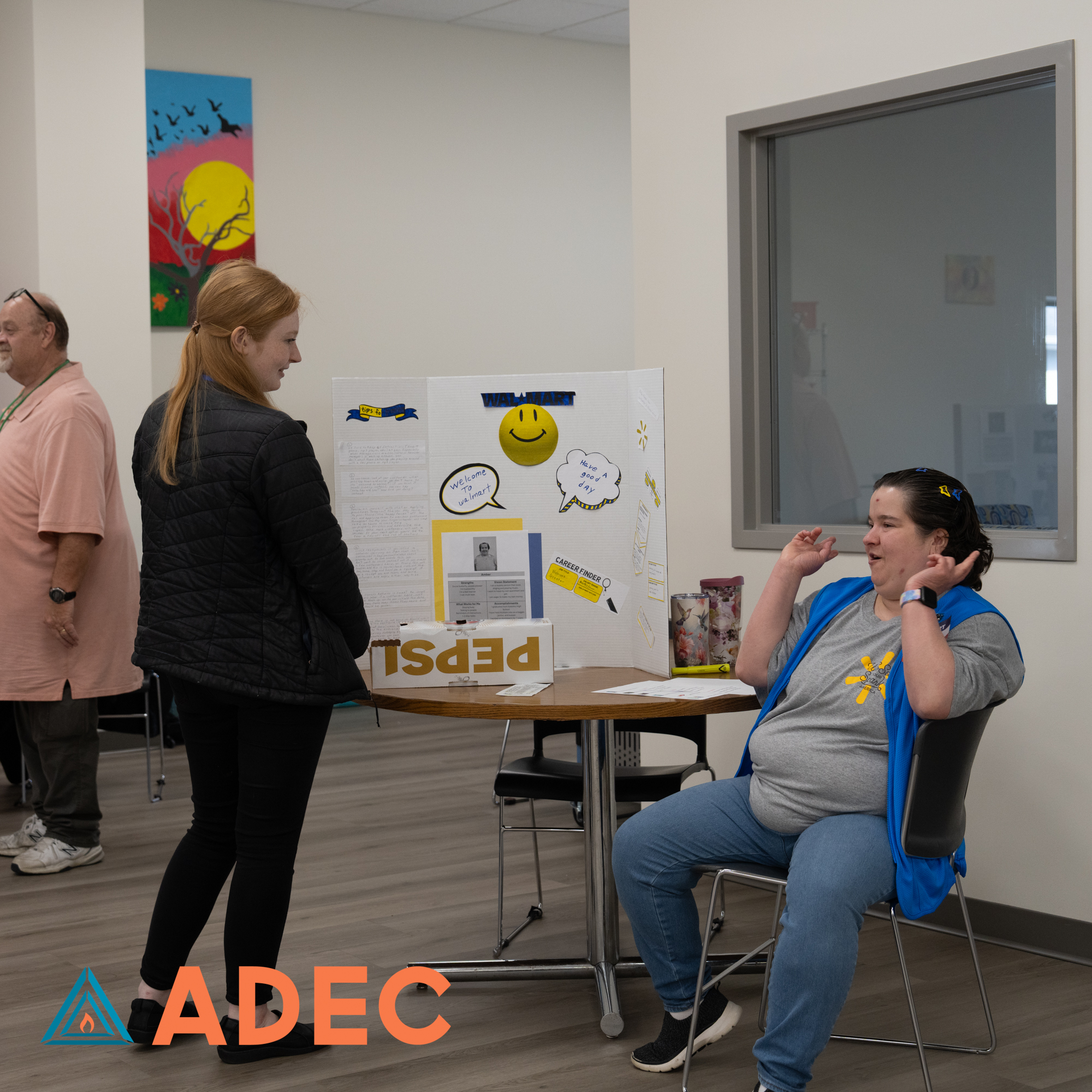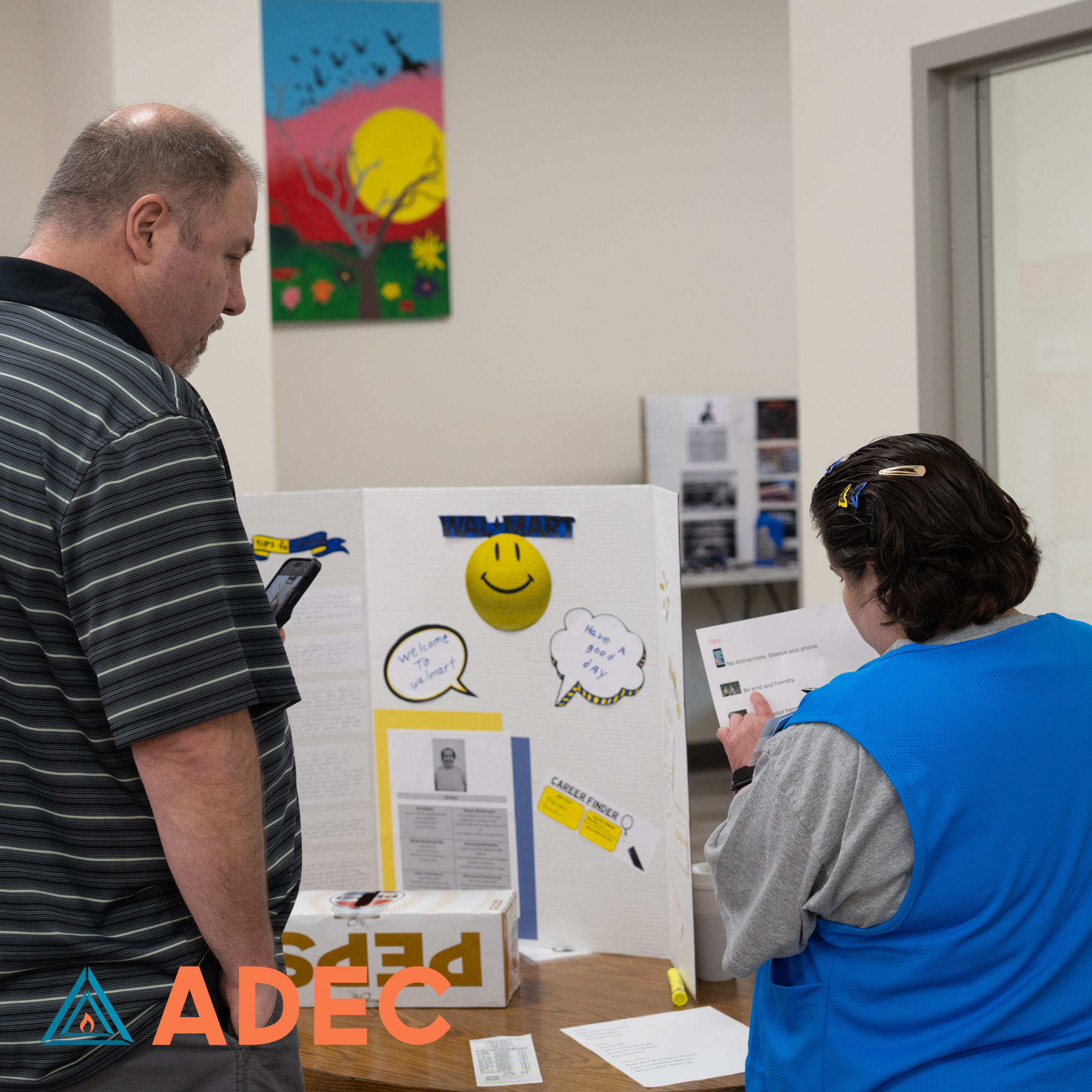 Our Skills & Training program spent weeks researching careers and preparing creative, thoughtful projects to showcase a job they wanted to learn more about. On April 29th, each individual proudly presented their hard work, and our ADEC community showed up to celebrate them! From future chefs to mechanics and everything in between, the effort and passion on display was truly inspiring!